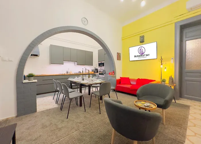 Das Apartment liegt im Herzen von Budapest, lediglich 5 Gehminuten vom Anantara New York Palace Budapest Hotel entfernt. Die U-Bahn-Station U-Bahn-Station Blaha Lujza tér ist 350 m von dem 143 m² großen Rose House - Modern 5Br Home In Central Budapest Ac, und Theater Madách Színház ist auch ein paar Schritte entfernt von der Unterkunft. Der Königspalast ist in ungefähr 25 Gehminuten Entfernung vom Apartment.